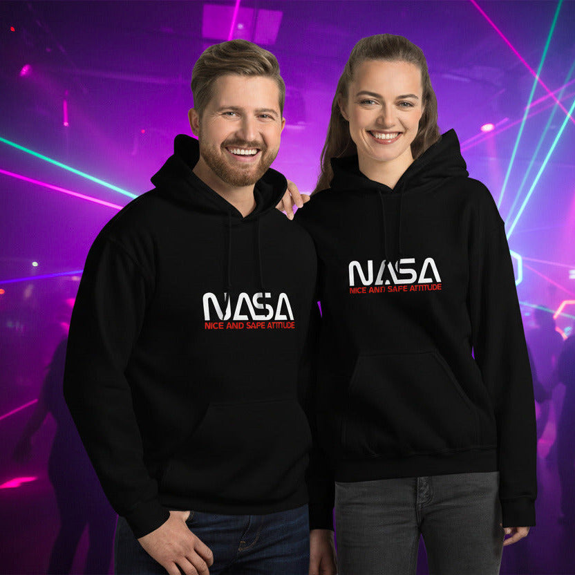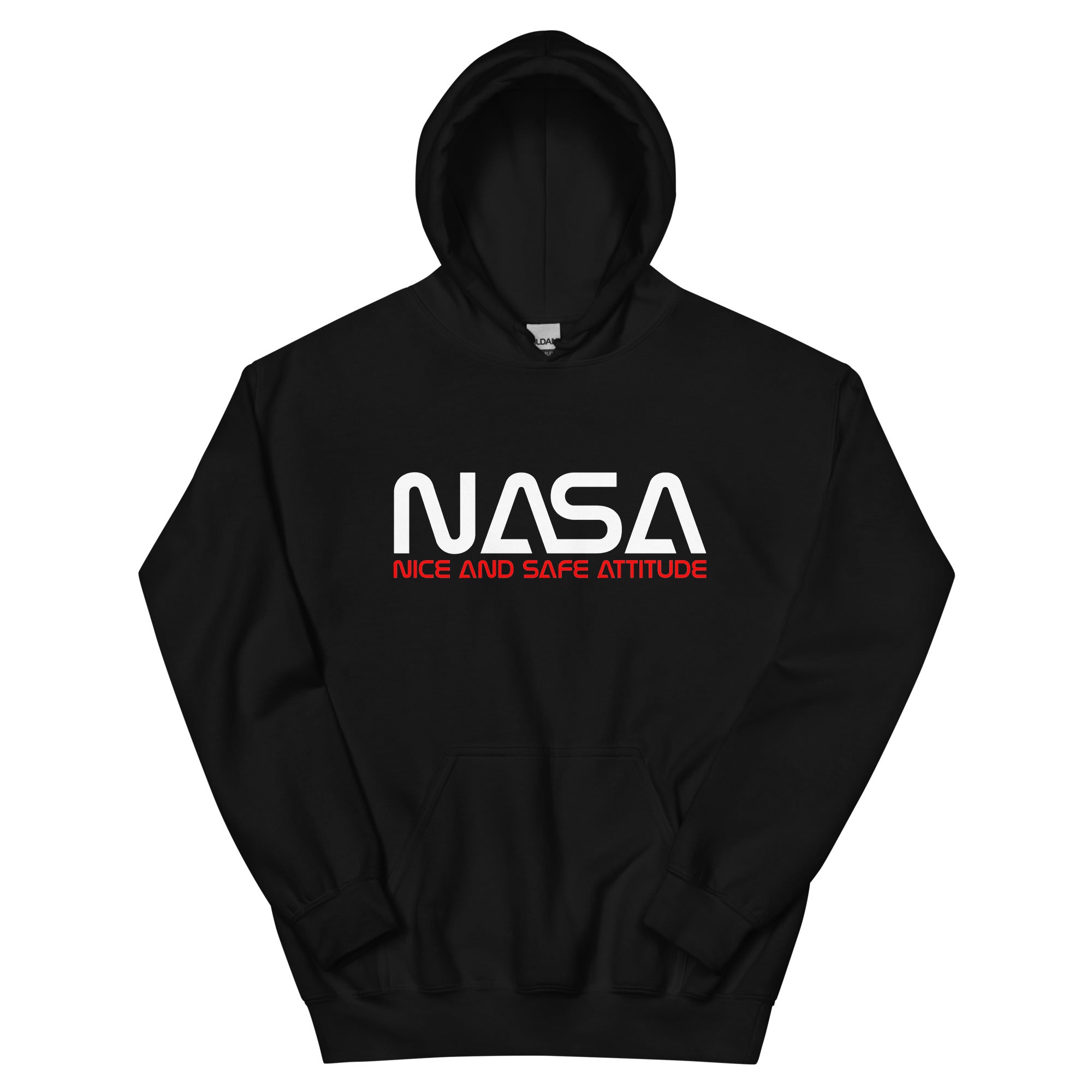 NASA Nice and Safe Attitude Unisex Hoodie (White/Red logo)